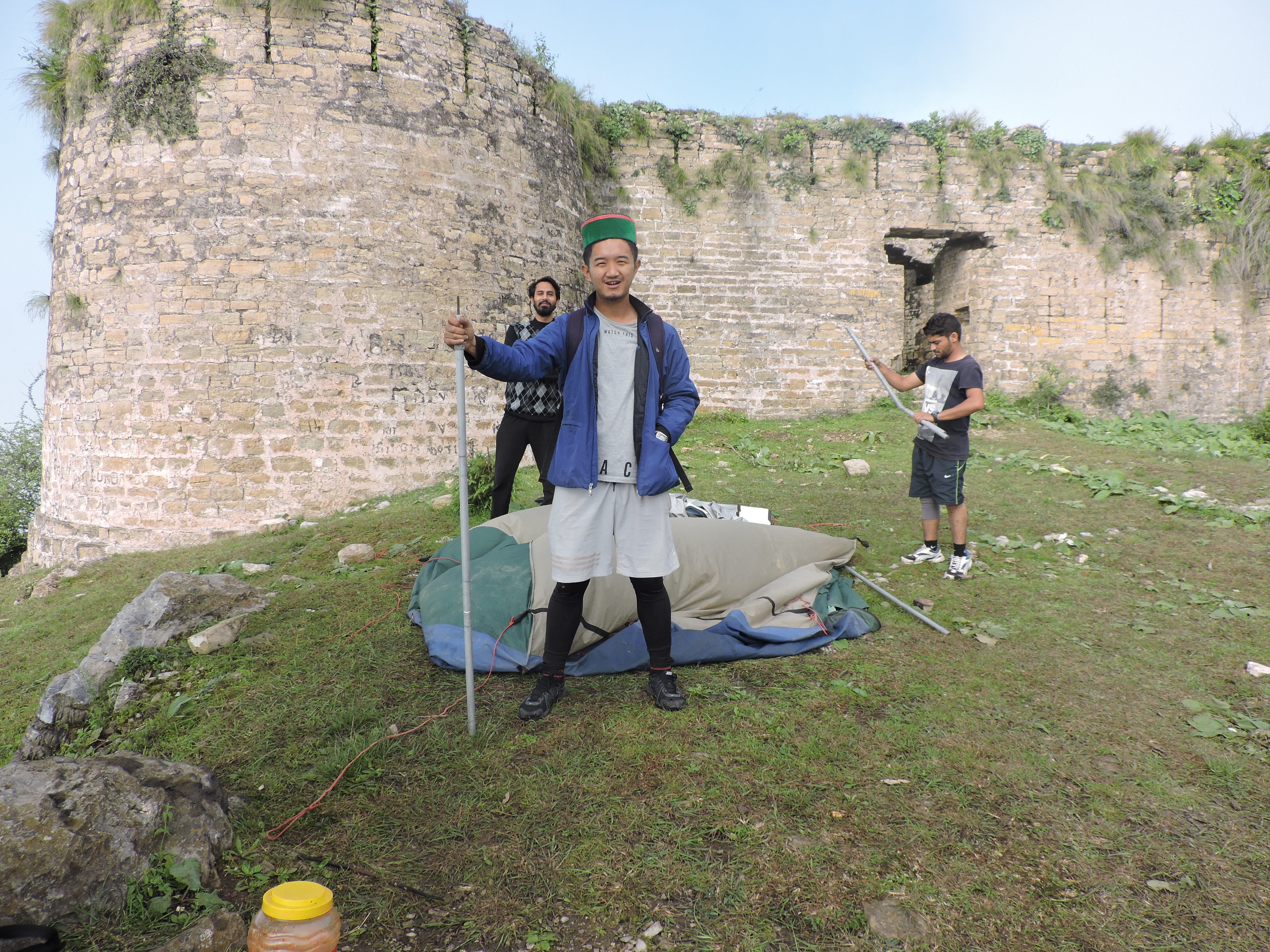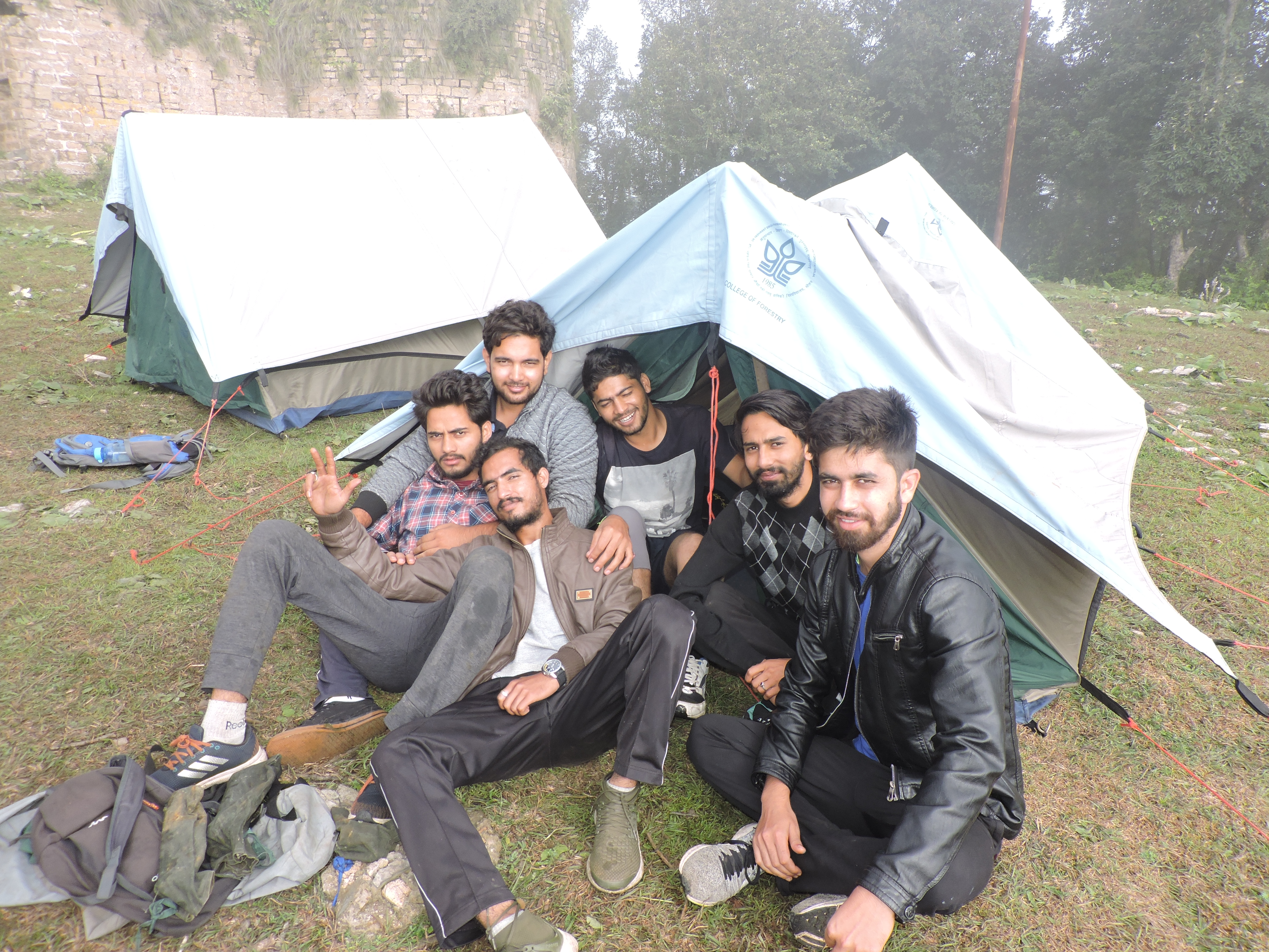 To reach the destination we took tents along with us and start our trekking journey from Nauni University gate. It was a tough experience to reach to the destination. It took around 2 and half hour to reach to the top of the Pahari , we reached around 7:30 pm. Due to very hectic path, we all were tired so we just fixed our tents and lit the bon fire there.